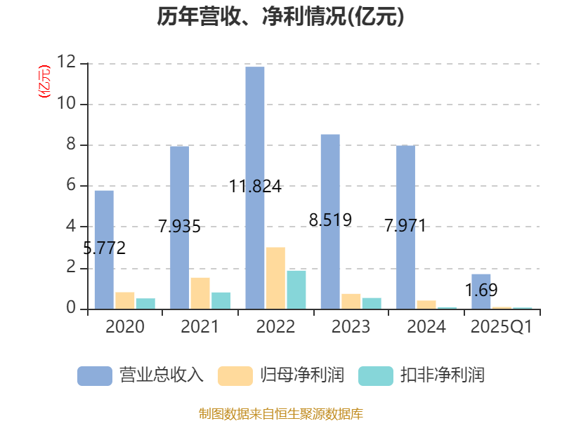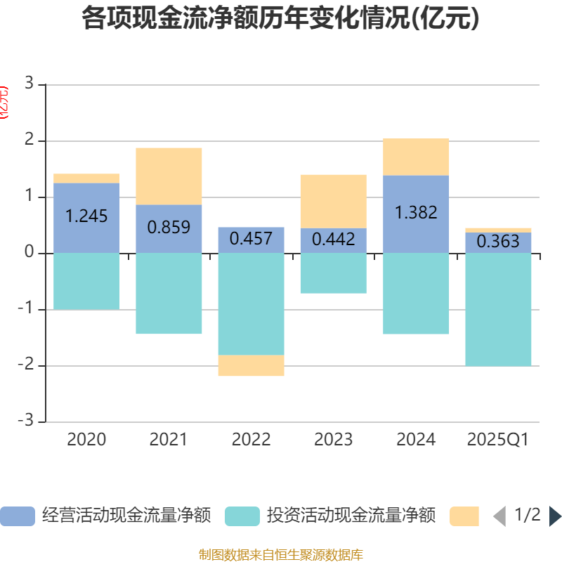 截至2025年一季度末,公司经营活动现金流净额为3627.34万元,同比增加9960.55万元;筹资活动现金流净额780.23万元,同比增加544.72万元;投资活动现金流净额-2.02亿元,上年同期为-3985.87万元。