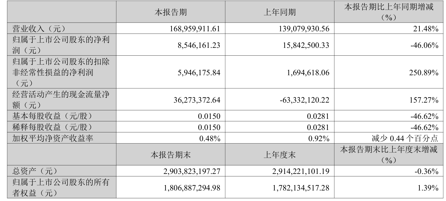 中证智能财讯振芯科技(300101)4月25日披露2025年第一季度报告。公司实现营业总收入1.69亿元,同比增长21.48%;归母净利润854.62万元,同比下降46.06%;扣非净利润594.62万元,同比增长250.89%;经营活动产生的现金流量净额为3627.34万元,上年同期为-6333.21万元;报告期内,振芯科技基本每股收益为0.015元,加权平均净资产收益率为0.48%。