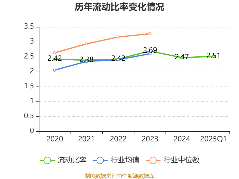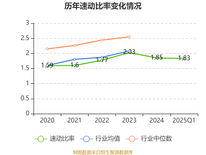 2025年第一季度,公司流动比率为2.51,速动比率为1.83。