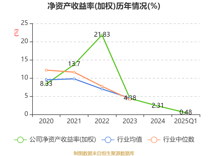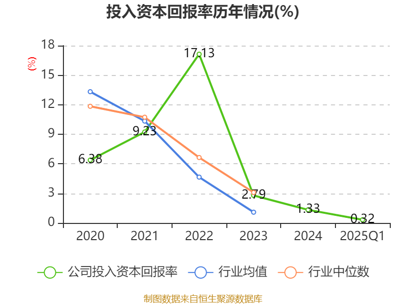 盈利能力方面, 2025年一季度公司加权平均净资产收益率为0.48%,同比下降0.44个百分点。公司2025年第一季度投入资本回报率为0.32%,较上年同期下降0.24个百分点。