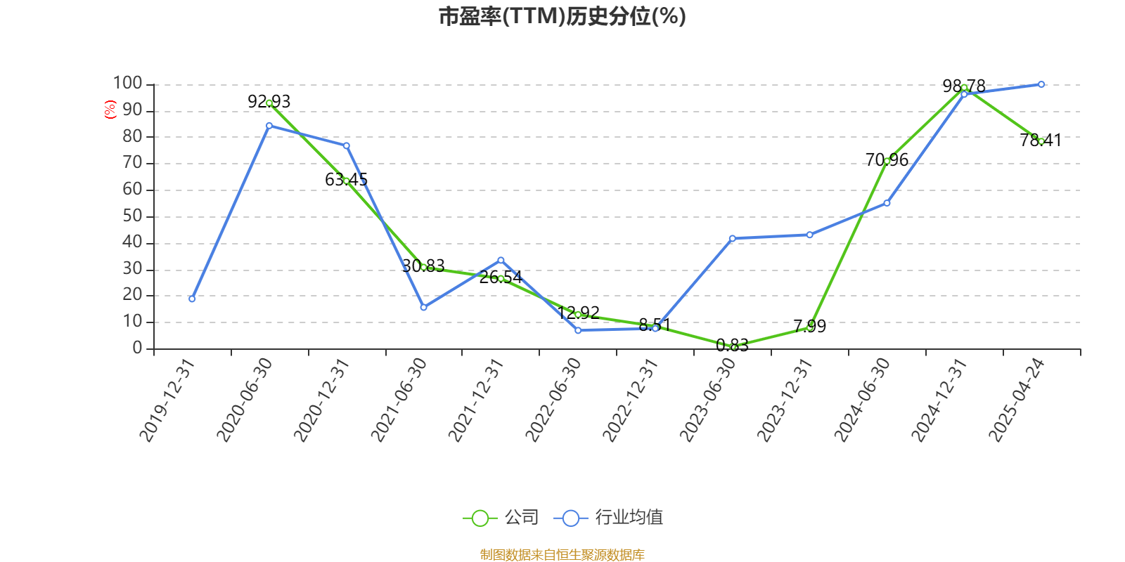 市盈率、市净率为负时,不显示当期分位数,会导致折线图中断。