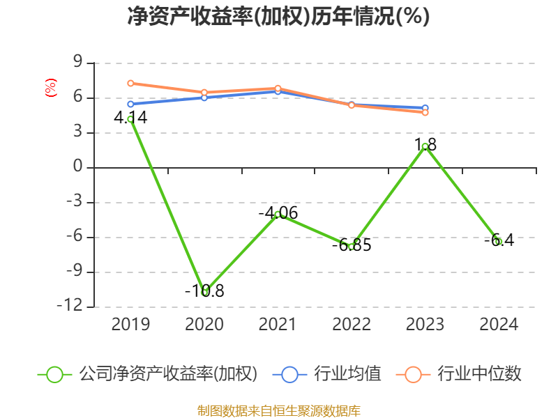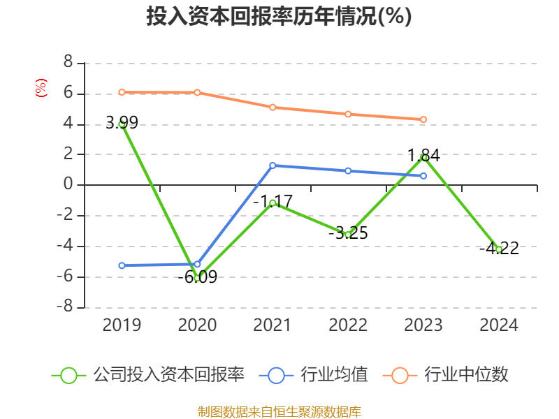 数据显示,2024年公司加权平均净资产收益率为-6.4%,较上年同期下降8.2个百分点。公司2024年投入资本回报率为-4.22%,较上年同期下降6.06个百分点。
