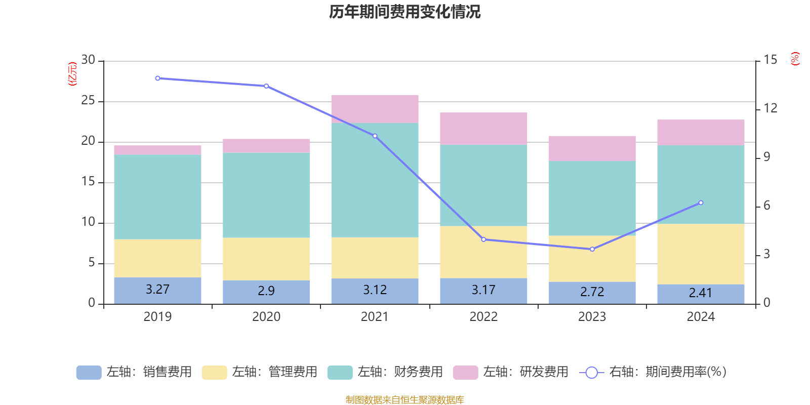 数据显示,2024年公司加权平均净资产收益率为10.54%,较上年同期下降7.58个百分点。公司2024年投入资本回报率为7.47%,较上年同期下降3.89个百分点。