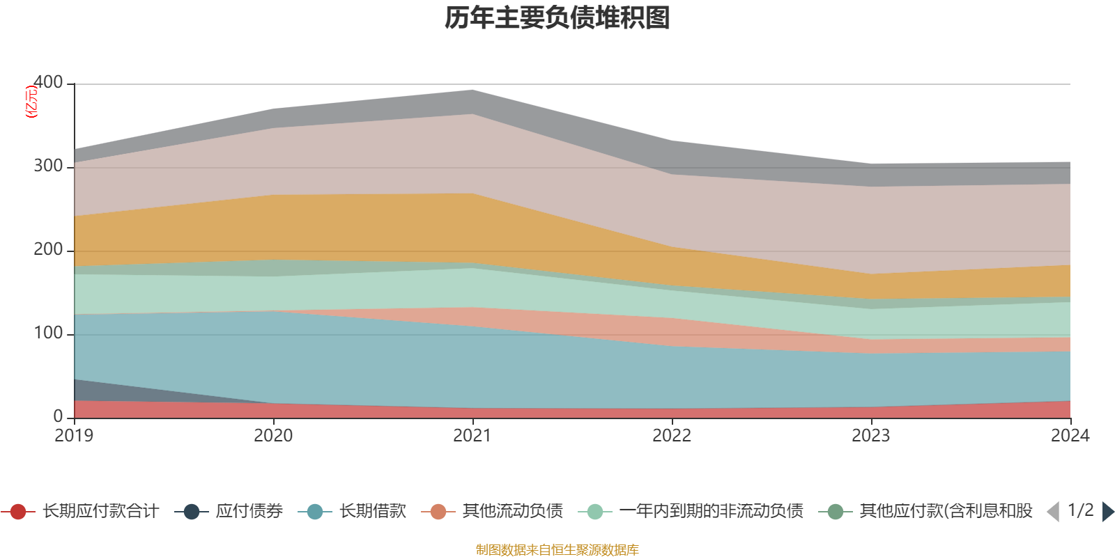 负债重大变化方面,截至2024年末,公司应付票据及应付账款较上年末增加26.45%,占公司总资产比重上升1.57个百分点;长期应付款合计较上年末增加57.17%,占公司总资产比重上升1.35个百分点;一年内到期的非流动负债较上年末增加16.6%,占公司总资产比重上升1.26个百分点;其他应付款(含利息和股利)较上年末减少46.81%,占公司总资产比重下降0.92个百分点。