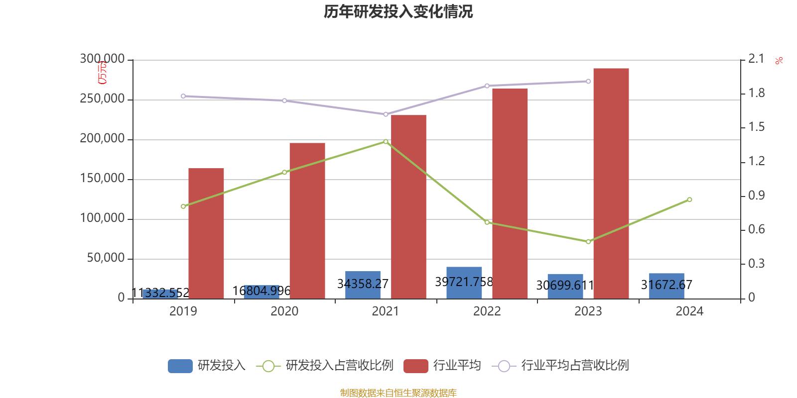 2024年全年,公司研发投入金额为3.17亿元,同比增长3.17%;研发投入占营业收入比例为0.87%,相比上年同期上升0.37个百分点。此外,公司全年研发投入资本化率为0%。