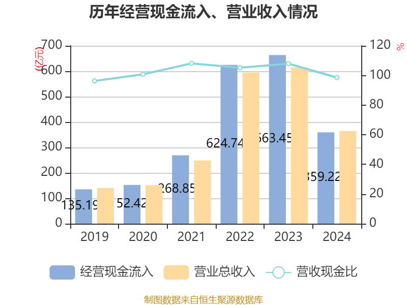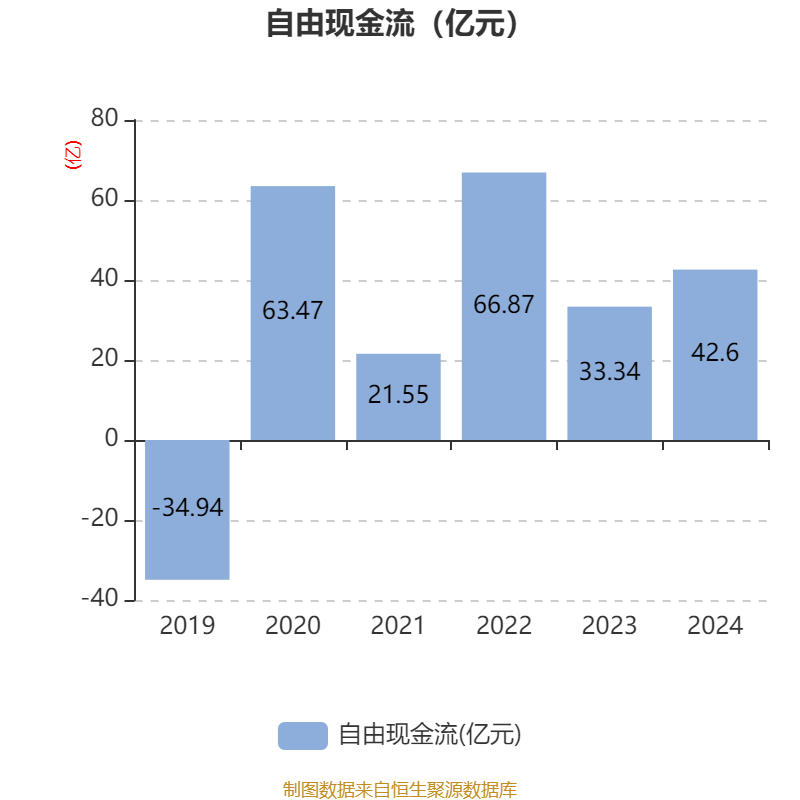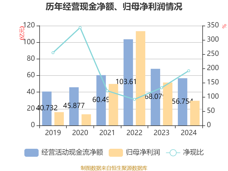 截至2024年,公司经营活动现金流净额为56.75亿元,同比下降16.64%;筹资活动现金流净额-37.78亿元,同比增加24.35亿元;投资活动现金流净额-21.96亿元,上年同期为-4.07亿元。
