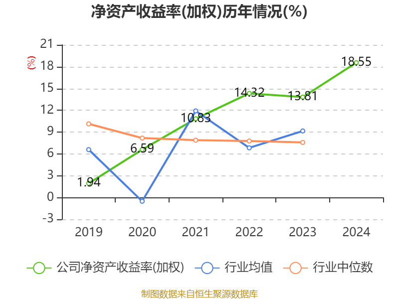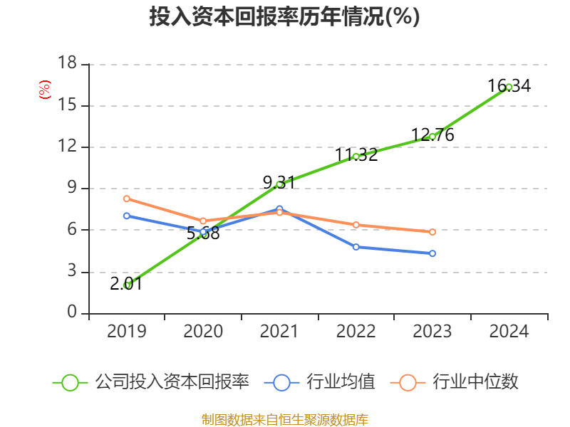 数据显示,2024年公司加权平均净资产收益率为18.55%,较上年同期上升4.74个百分点。公司2024年投入资本回报率为16.34%,较上年同期上升3.58个百分点。