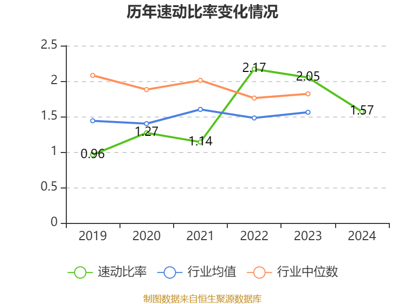 2024年,公司流动比率为2.06,速动比率为1.57。