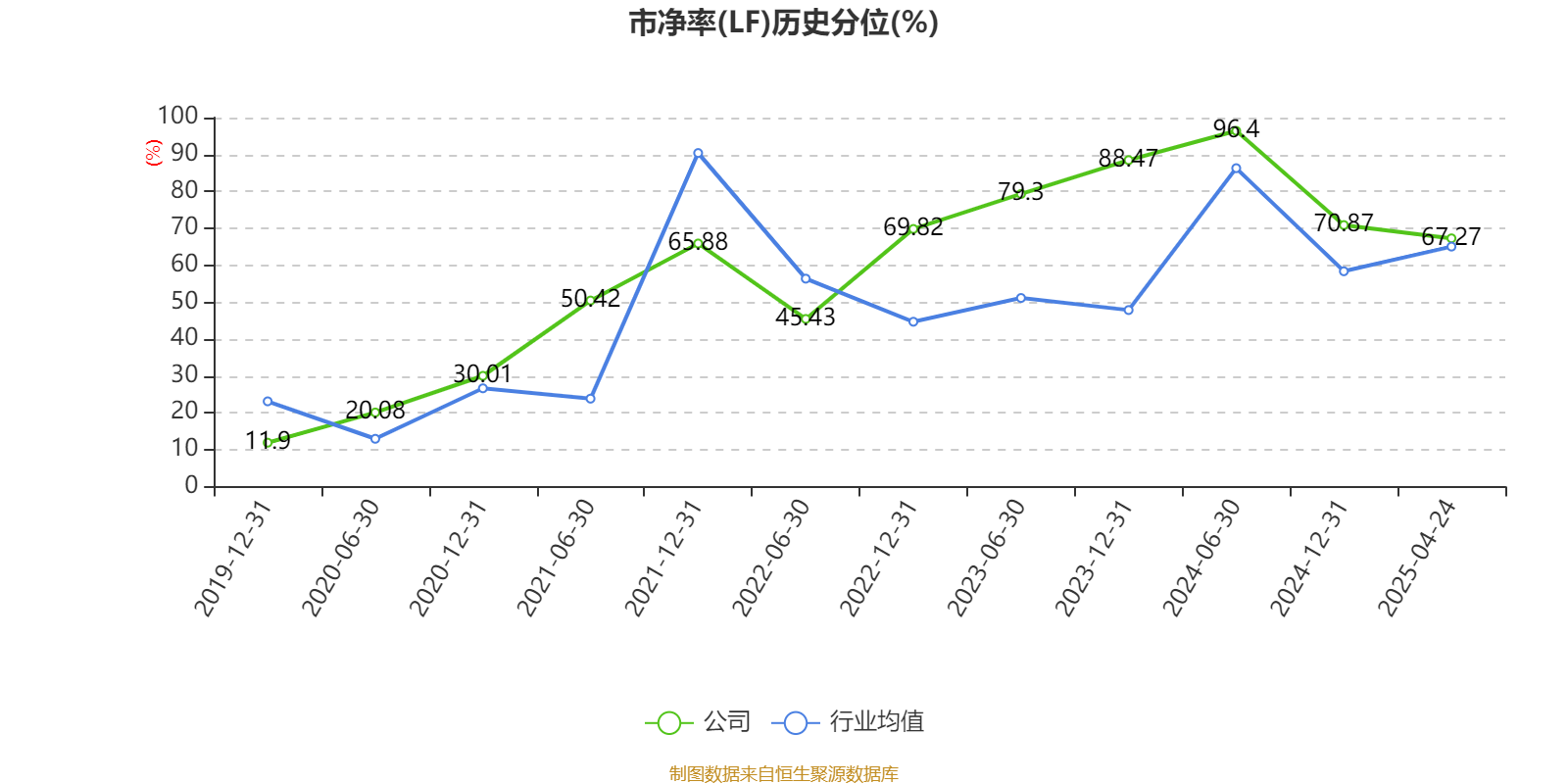 市盈率、市净率为负时,不显示当期分位数,会导致折线图中断。