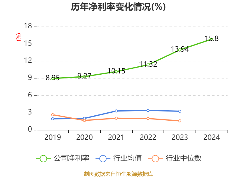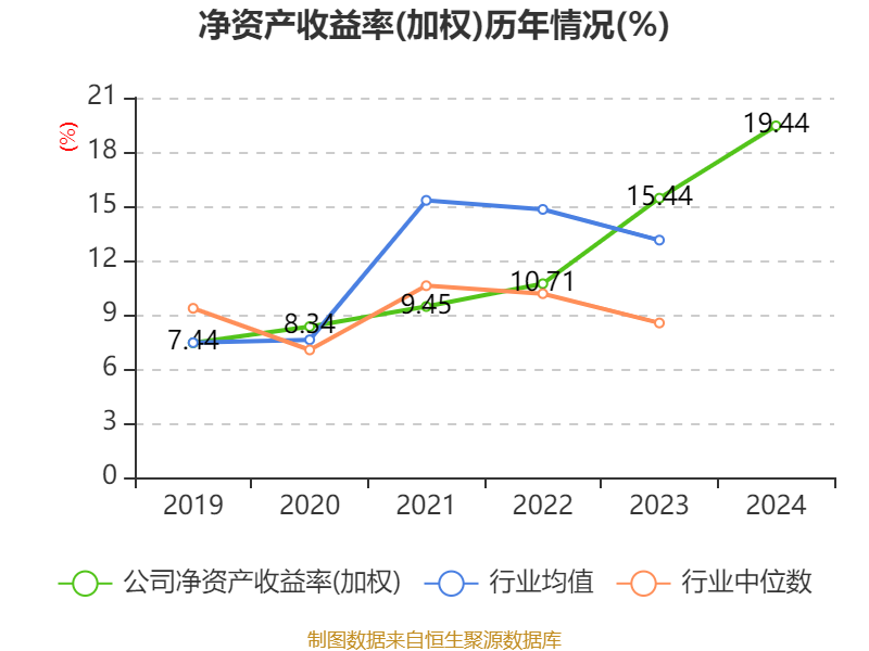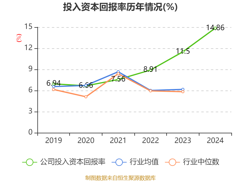 数据显示,2024年公司加权平均净资产收益率为19.44%,较上年同期上升4个百分点。公司2024年投入资本回报率为14.86%,较上年同期上升3.36个百分点。