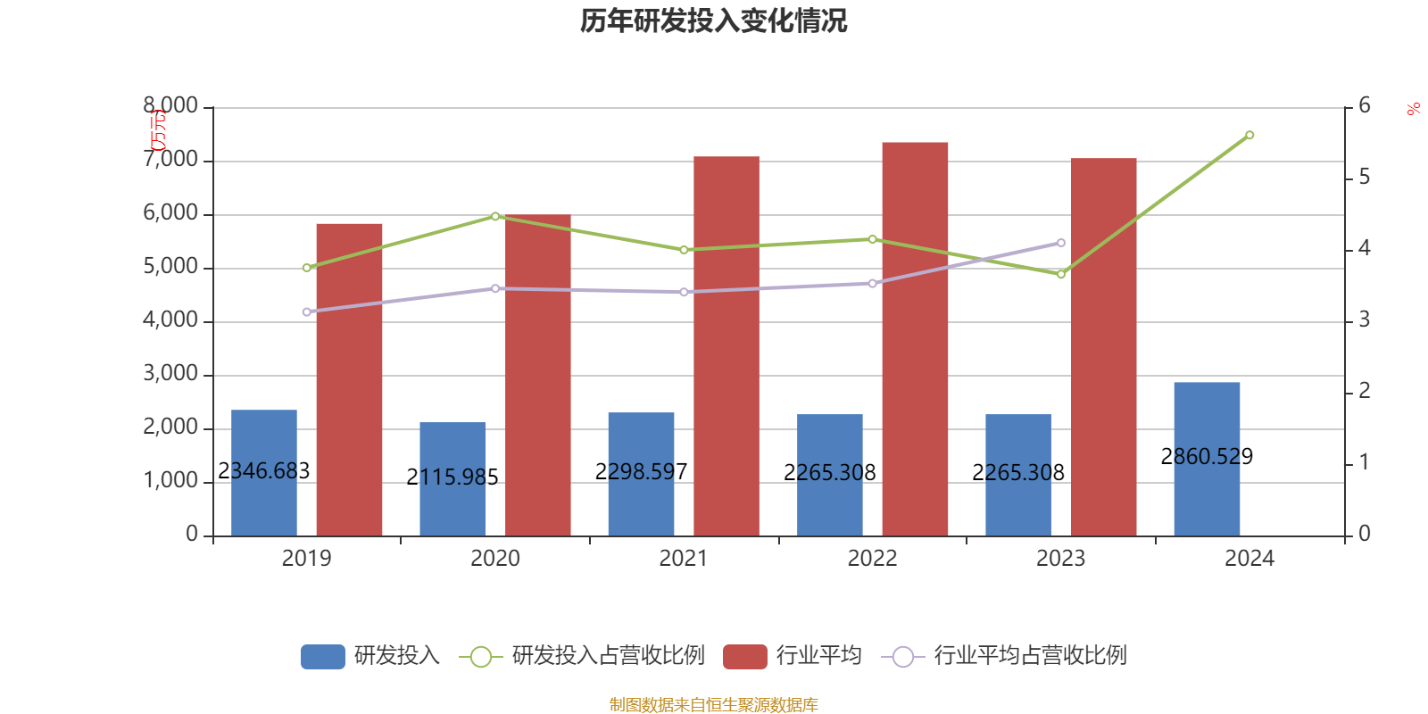 2024年全年,公司研发投入金额为2860.53万元,同比增长26.28%;研发投入占营业收入比例为5.61%,相比上年同期上升1.95个百分点。此外,公司全年研发投入资本化率为0%。