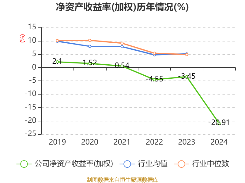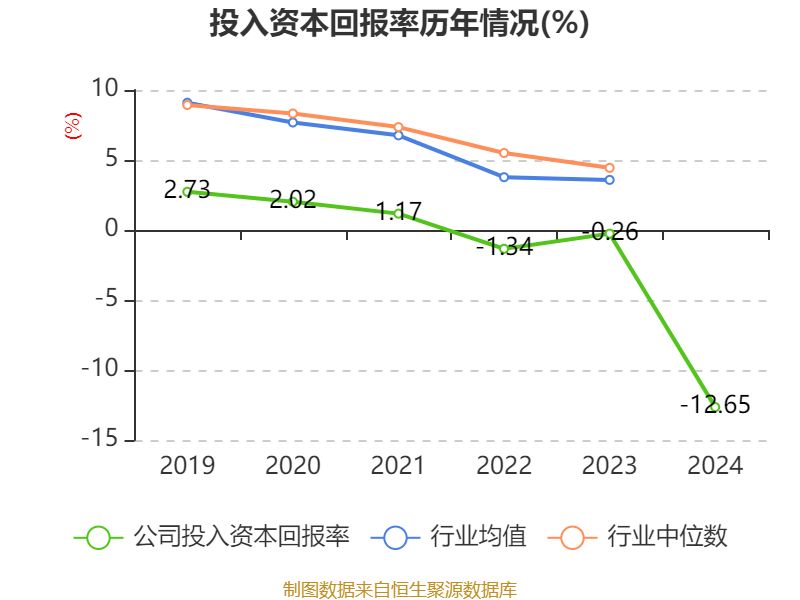 数据显示,2024年公司加权平均净资产收益率为-20.91%,较上年同期下降17.46个百分点。公司2024年投入资本回报率为-12.65%,较上年同期下降12.39个百分点。