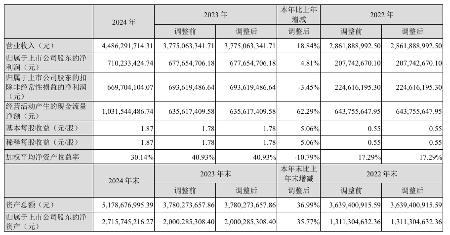 数据显示,2024年公司加权平均净资产收益率为30.14%,较上年同期下降10.79个百分点。公司2024年投入资本回报率为28.44%,较上年同期下降9.89个百分点。