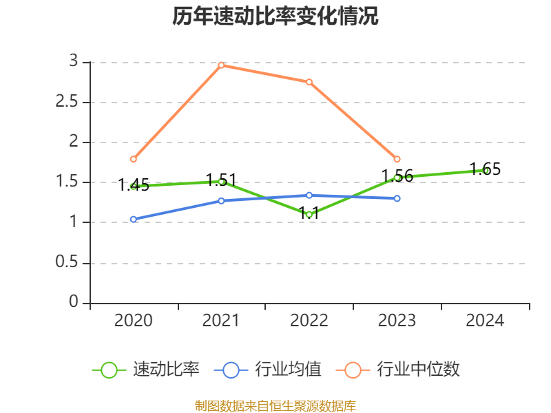 2024年,公司流动比率为1.97,速动比率为1.65。