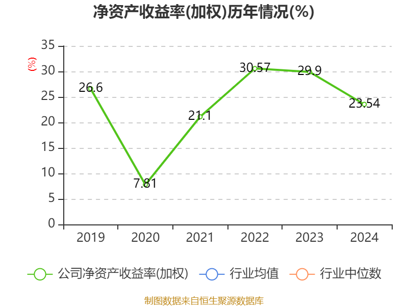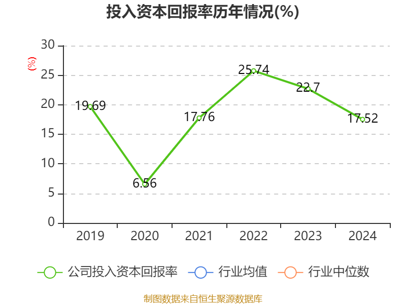 数据显示,2024年公司加权平均净资产收益率为23.54%,较上年同期下降6.36个百分点。公司2024年投入资本回报率为17.52%,较上年同期下降5.18个百分点。