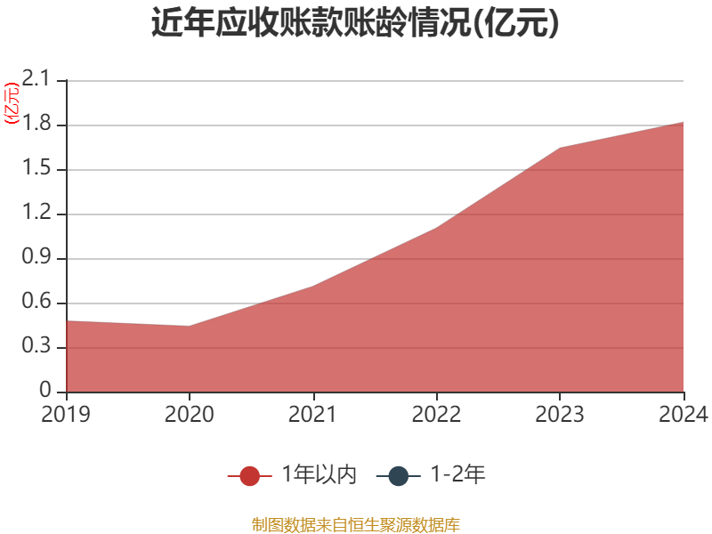从应收账款账龄结构来看,截至2024年末,公司账龄在1年以内的应收账款余额为1.82亿元,较上年末增长1745.57万元,占应收账款总额比例为99.94%,较上年末下降0.06个百分点。