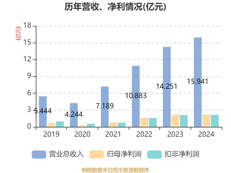 中证智能财讯恒鑫生活(301501)4月25日披露2024年年度报告。2024年,公司实现营业总收入15.94亿元,同比增长11.86%;归母净利润2.2亿元,同比增长2.82%;扣非净利润2.14亿元,同比增长1.19%;经营活动产生的现金流量净额为3.74亿元,同比增长70.33%;报告期内,恒鑫生活基本每股收益为2.8744元,加权平均净资产收益率为23.54%。公司2024年度分配预案为:拟向全体股东每10股转4.5股,派现5元(含税)。
