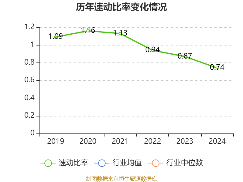 2024年,公司流动比率为1.03,速动比率为0.74。