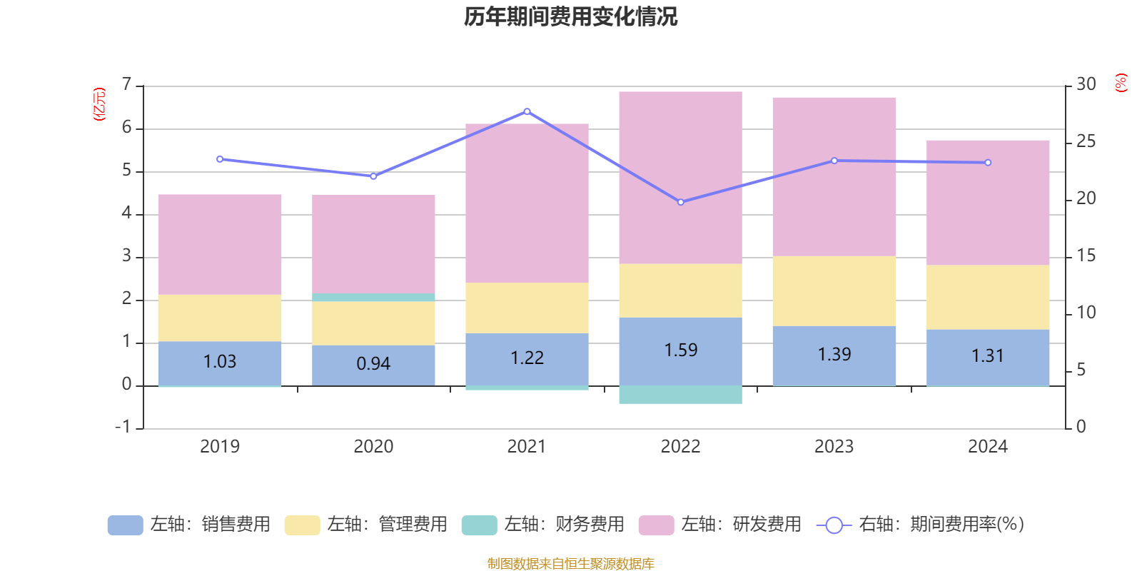 2024年全年,公司研发投入金额为2.91亿元,同比下降21.39%;研发投入占营业收入比例为11.88%,相比上年同期下降1.07个百分点。此外,公司全年研发投入资本化率为0%。