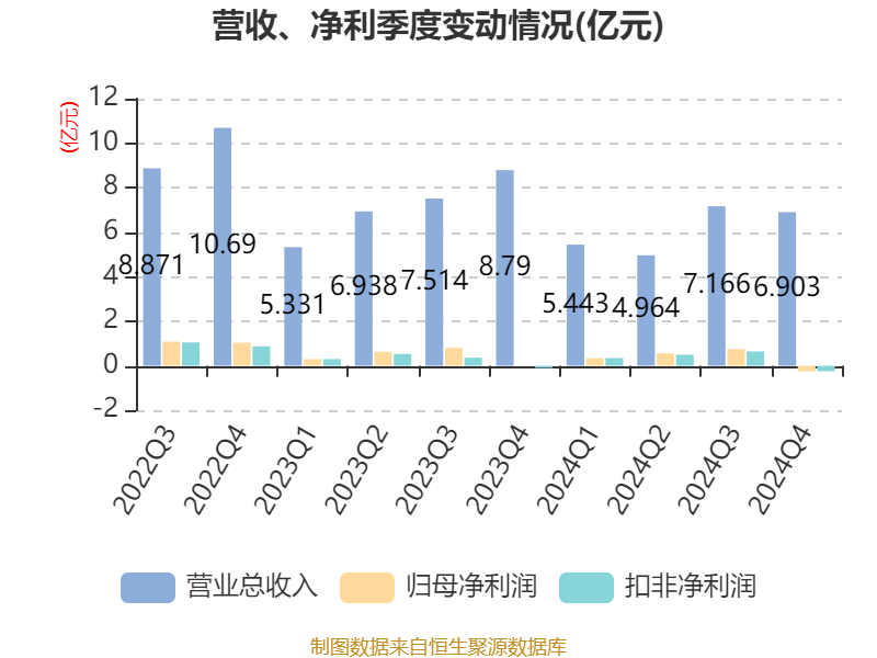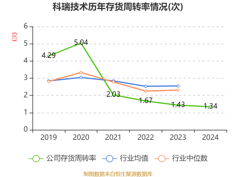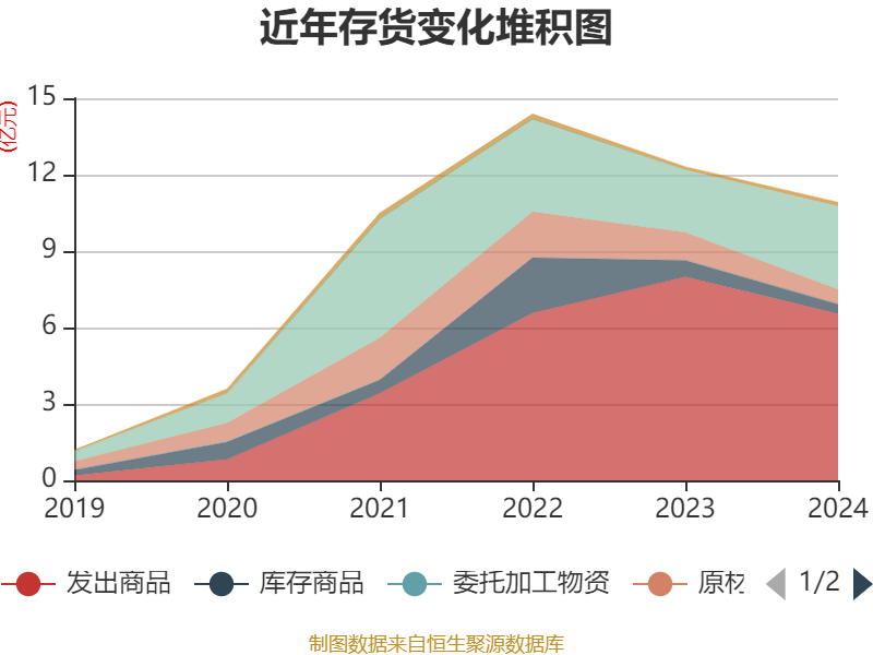 从存货变动来看,截至2024年末,公司存货账面价值为10.92亿元,占净资产的37.57%,较上年末减少1.4亿元。其中,存货跌价准备为1.14亿元,计提比例为9.44%。