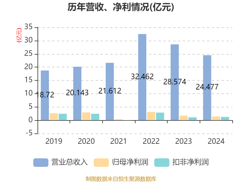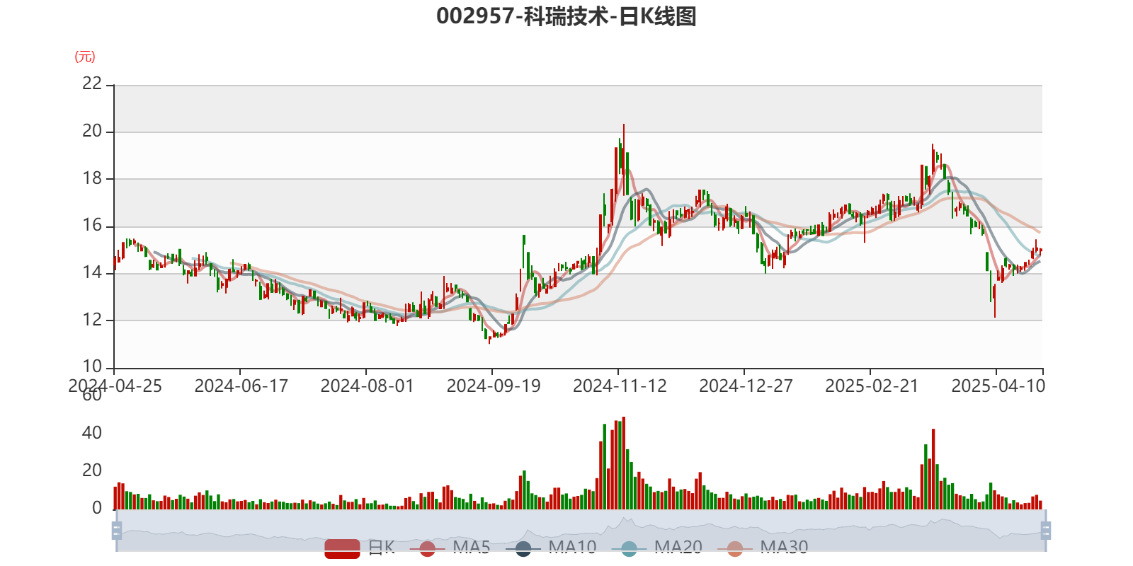 中证智能财讯科瑞技术(002957)4月25日披露2024年年度报告。2024年,公司实现营业总收入24.48亿元,同比下降14.34%;归母净利润1.39亿元,同比下降19.71%;扣非净利润1.24亿元,同比增长13.07%;经营活动产生的现金流量净额为2.89亿元,同比下降7.36%;报告期内,科瑞技术基本每股收益为0.3396元,加权平均净资产收益率为4.84%。公司2024年度分配预案为:拟向全体股东每10股派现1.7元(含税)。