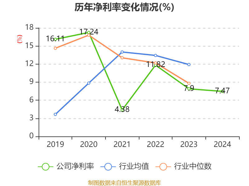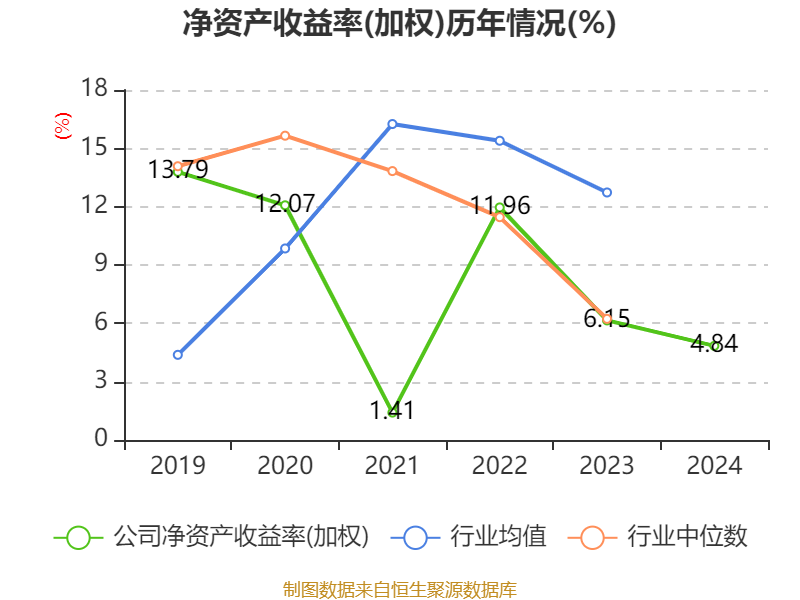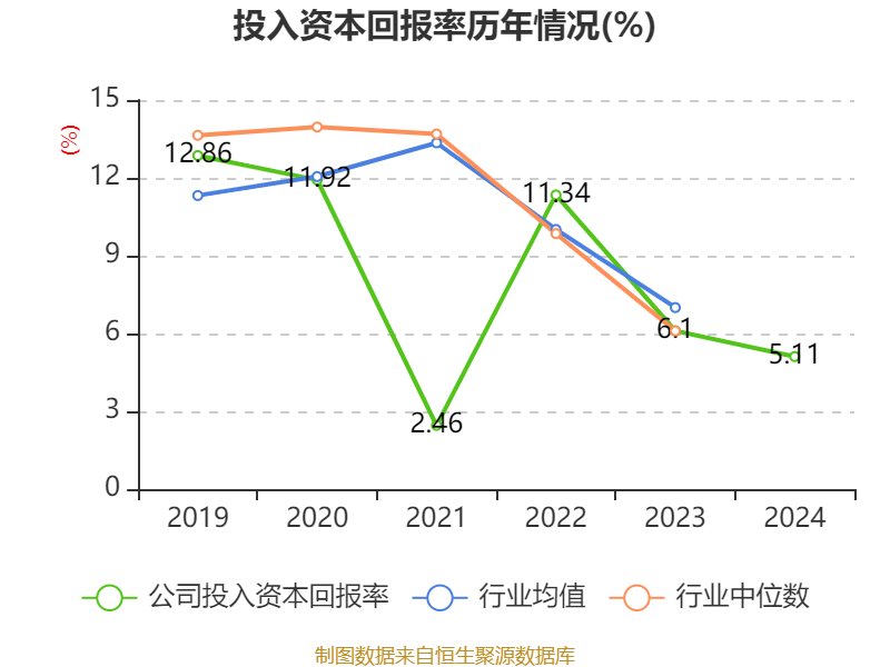 数据显示,2024年公司加权平均净资产收益率为4.84%,较上年同期下降1.31个百分点。公司2024年投入资本回报率为5.11%,较上年同期下降0.99个百分点。
