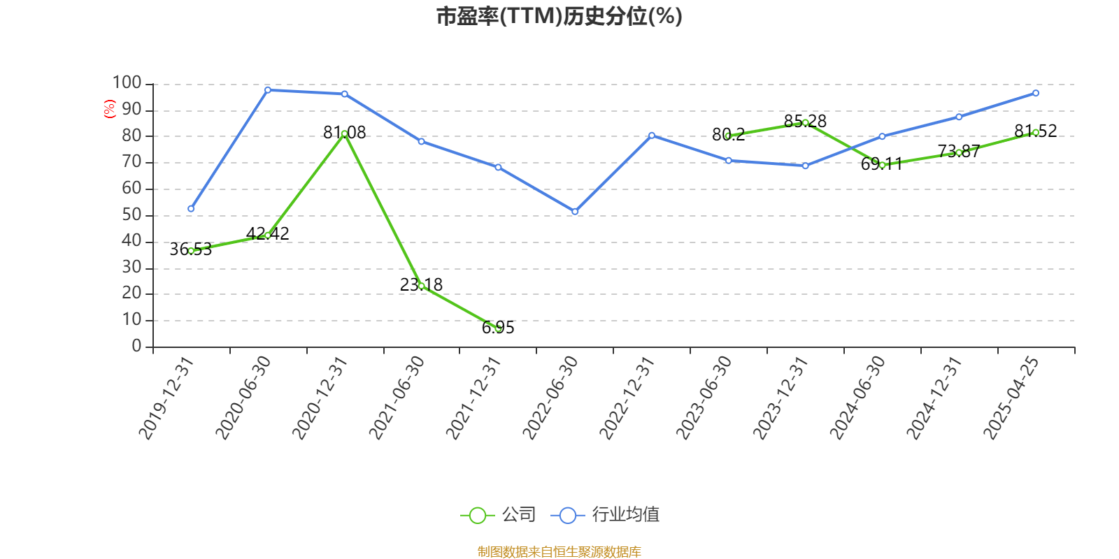 市盈率、市净率为负时,不显示当期分位数,会导致折线图中断。