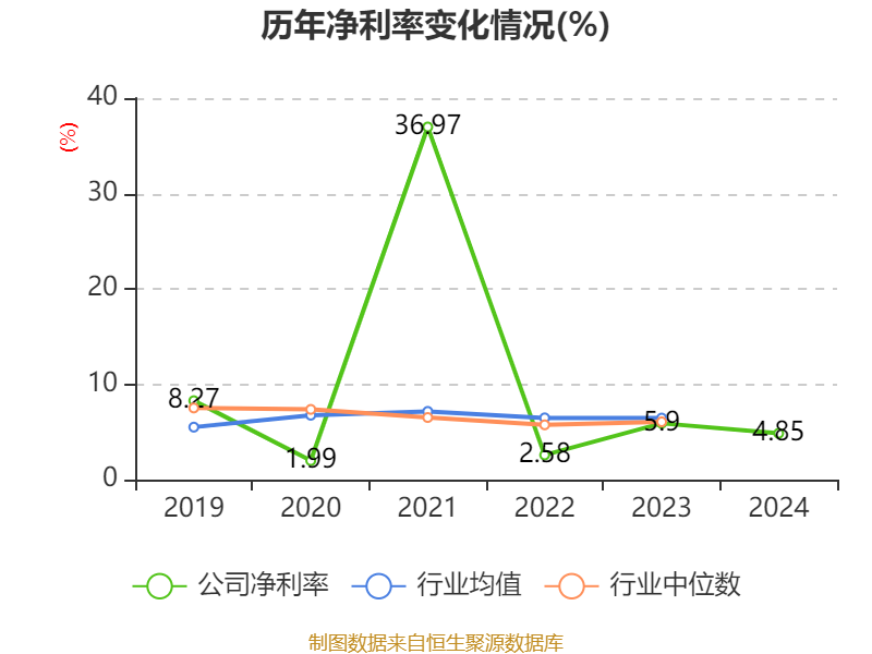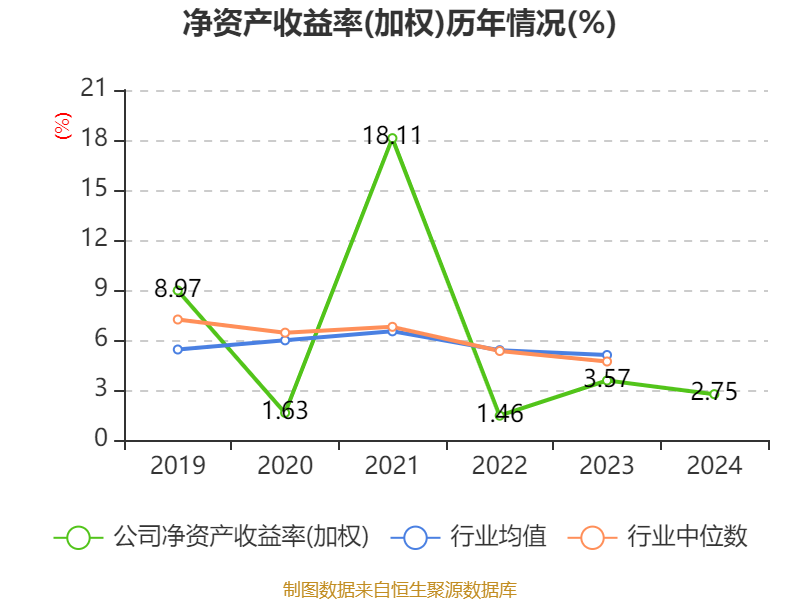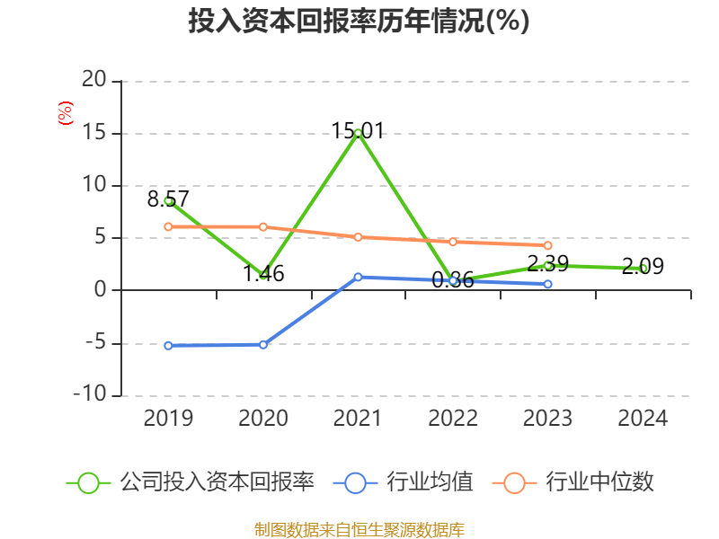 数据显示,2024年公司加权平均净资产收益率为2.75%,较上年同期下降0.82个百分点。公司2024年投入资本回报率为2.09%,较上年同期下降0.3个百分点。