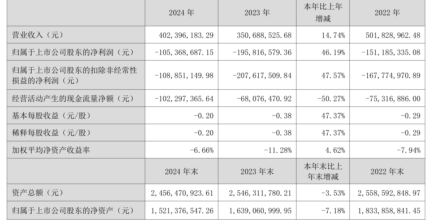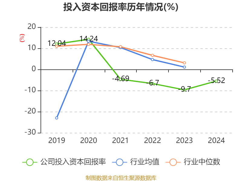 数据显示,2024年公司加权平均净资产收益率为-6.66%,较上年同期上升4.62个百分点。公司2024年投入资本回报率为-5.52%,较上年同期上升4.18个百分点。