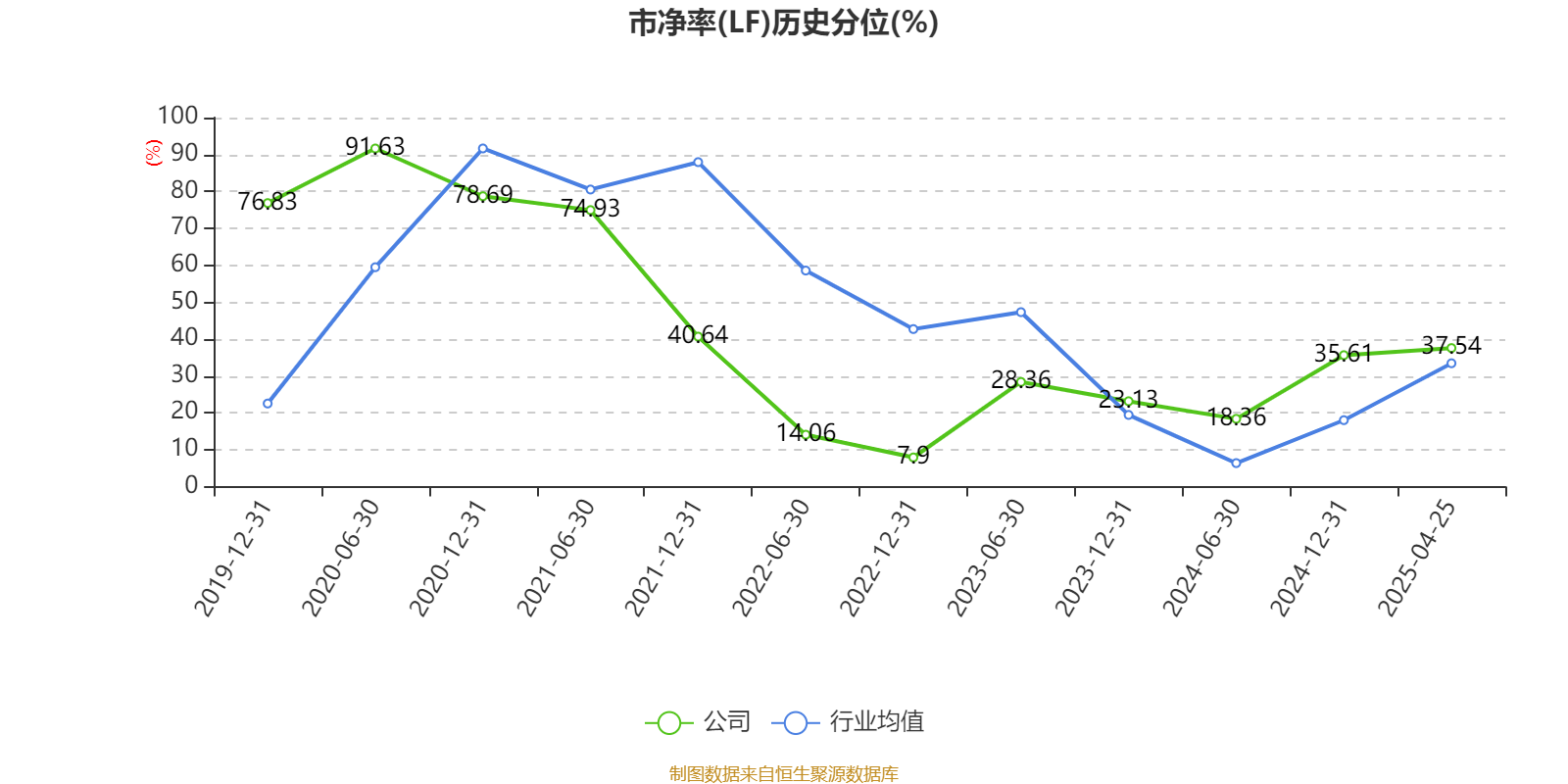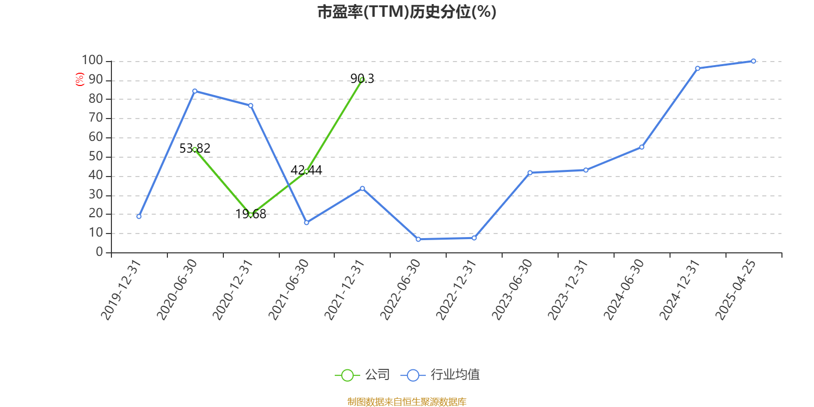 市盈率、市净率为负时,不显示当期分位数,会导致折线图中断。
