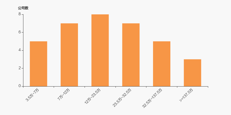 美锦能源股东户数高于行业平均水平。根据Choice数据,截至2025年3月31日煤炭行业上市公司平均股东户数为8.41万户。其中,公司股东户数处于5万~6.5万区间占比最高,为22.86%。