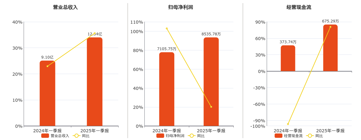 公司营业总收入为12.34亿元。归母净利润为8535.78万元。经营活动现金净流入为675.29万元。