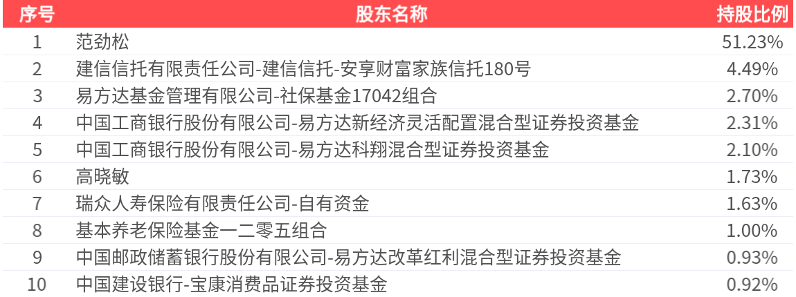 公司股东户数为9880户,前十大股东持股数量为1.66亿股,占总股本比例为69.04%,前十大股东持股情况如下: