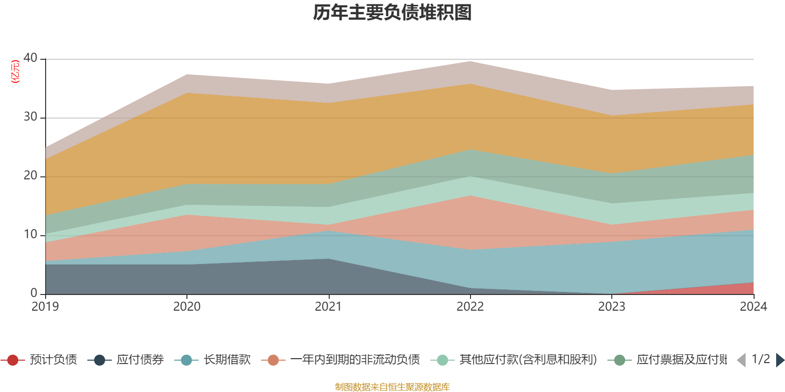 负债重大变化方面,截至2024年末,公司应付票据及应付账款较上年末增加26.76%,占公司总资产比重上升4.34个百分点;预计负债占公司总资产的4.25%,上年末为0;长期借款较上年末增加1.34%,占公司总资产比重上升2.61个百分点;一年内到期的非流动负债较上年末增加15.08%,占公司总资产比重上升1.74个百分点。