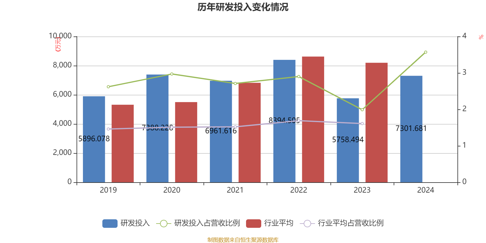 2024年全年,公司研发投入金额为7301.68万元,同比增长26.8%;研发投入占营业收入比例为3.57%,相比上年同期上升1.58个百分点。此外,公司全年研发投入资本化率为1.43%。