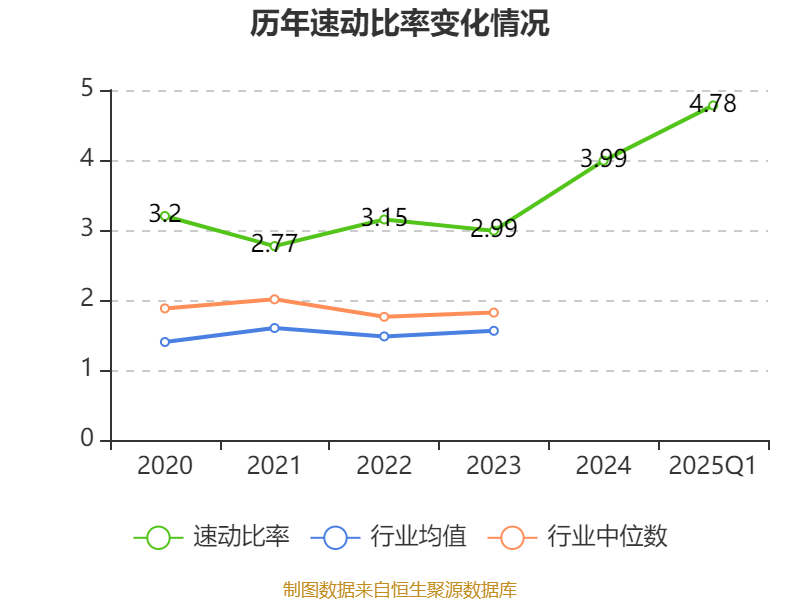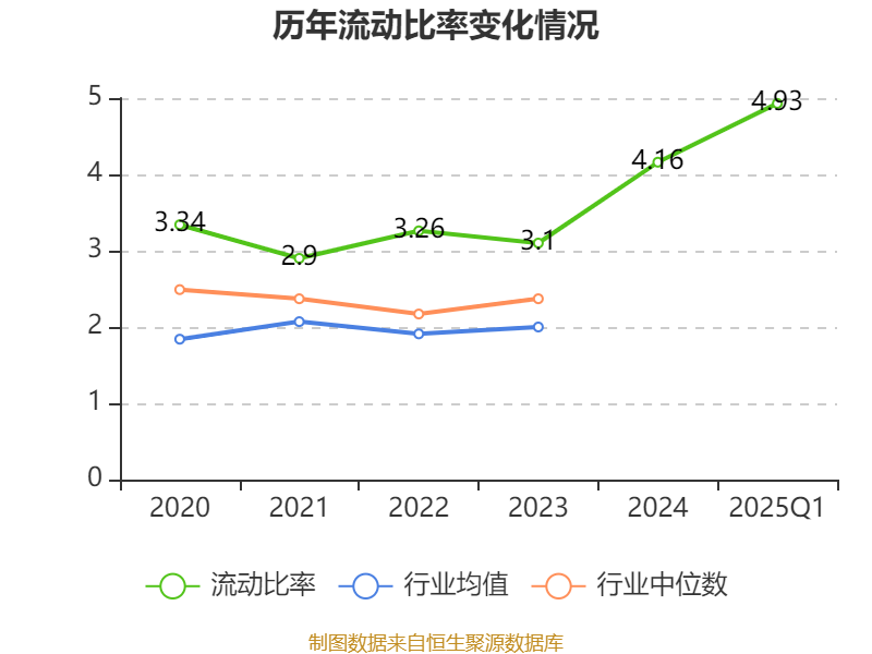 2025年第一季度,公司流动比率为4.93,速动比率为4.78。