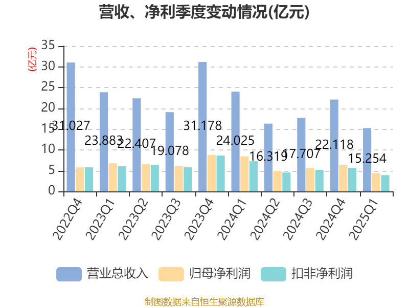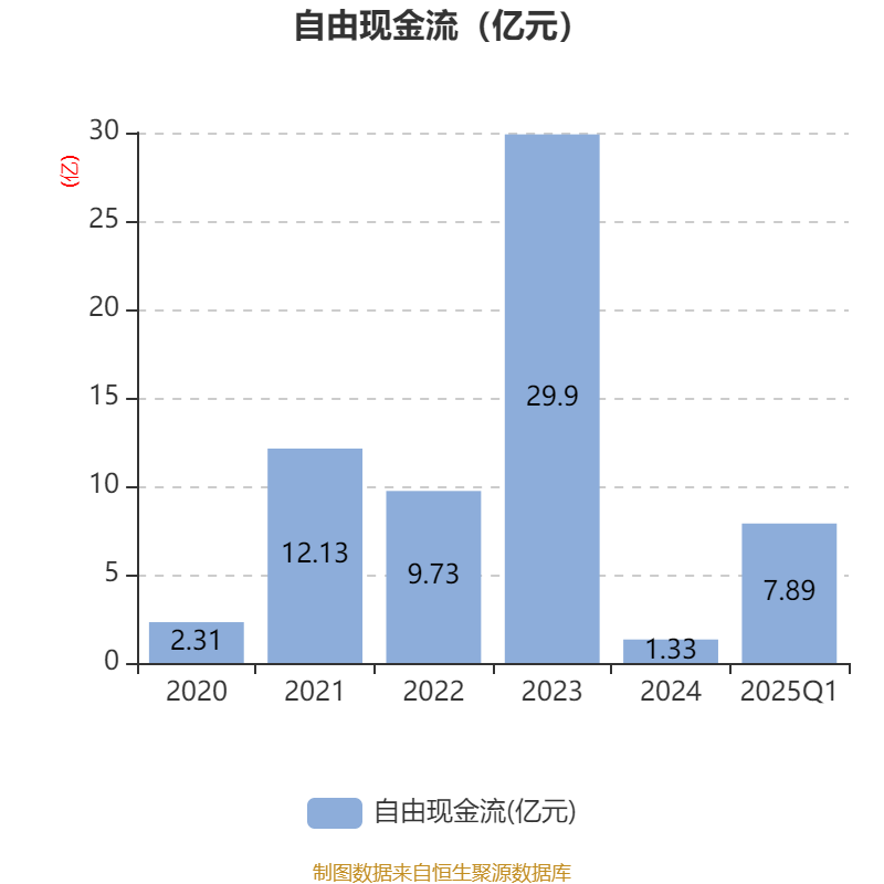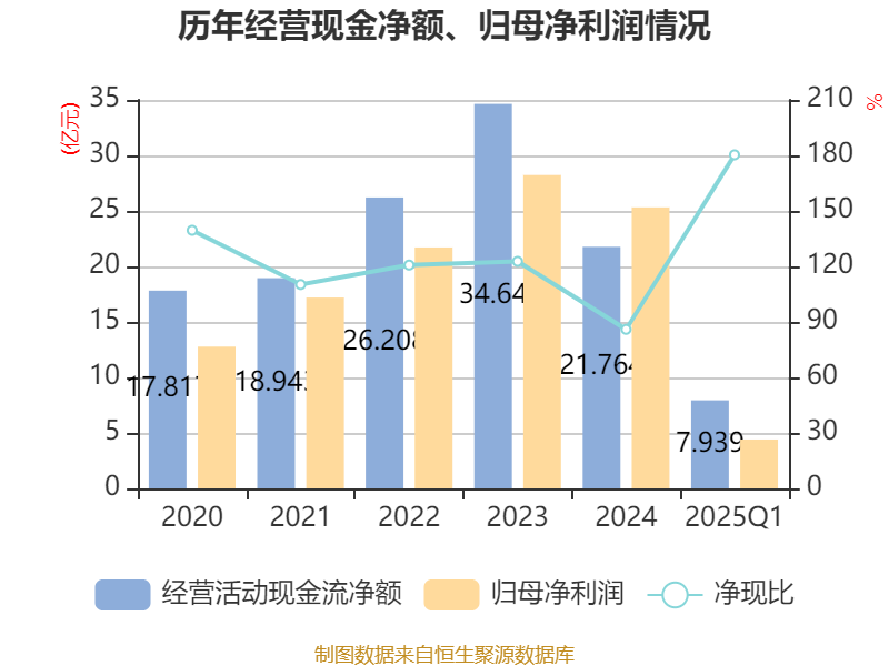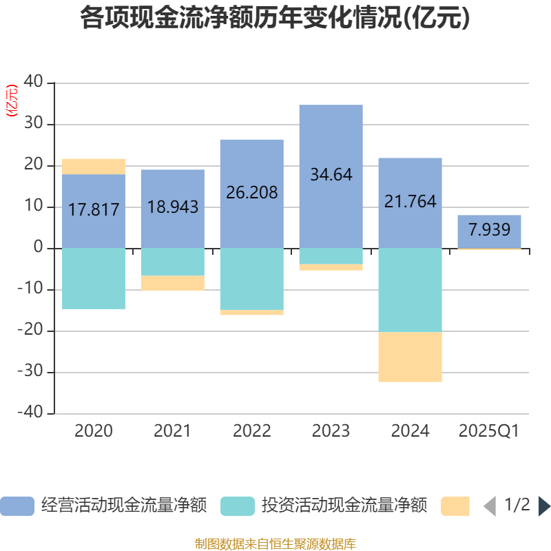 截至2025年一季度末,公司经营活动现金流净额为7.94亿元,同比下降40.7%;筹资活动现金流净额-3894.92万元,同比减少6.91亿元;投资活动现金流净额-919.71万元,上年同期为16.64亿元。