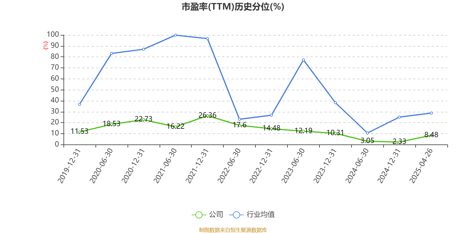 市盈率、市净率为负时,不显示当期分位数,会导致折线图中断。