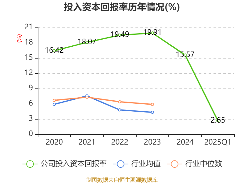 盈利能力方面, 2025年一季度公司加权平均净资产收益率为2.95%,同比下降3.19个百分点。公司2025年第一季度投入资本回报率为2.65%,较上年同期下降2.41个百分点。