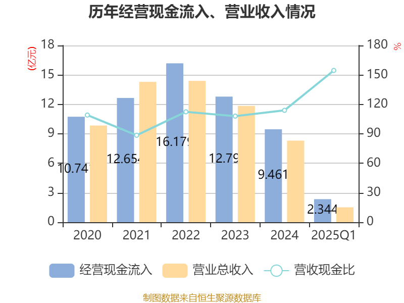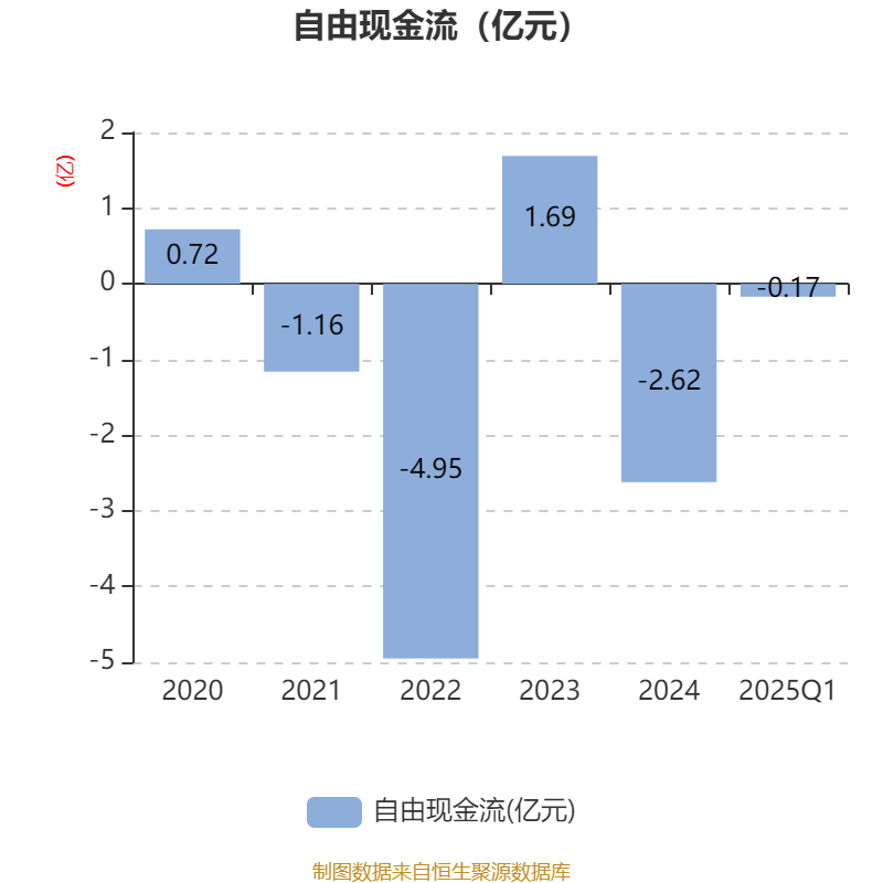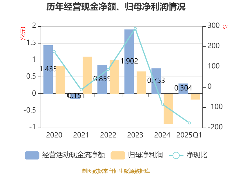 截至2025年一季度末,公司经营活动现金流净额为3040.82万元,同比下降56.41%;筹资活动现金流净额-14.69万元,同比增加8237.93万元;投资活动现金流净额-5223.64万元,上年同期为-3.48亿元。
