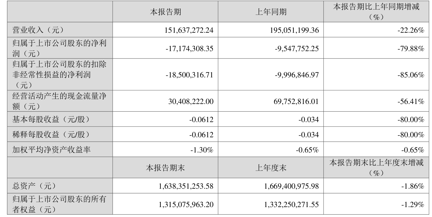 中证智能财讯中远通(301516)4月26日披露2025年第一季度报告。公司实现营业总收入1.52亿元,同比下降22.26%;归母净利润亏损1717.43万元,上年同期亏损954.78万元;扣非净利润亏损1850.03万元,上年同期亏损999.68万元;经营活动产生的现金流量净额为3040.82万元,同比下降56.41%;报告期内,中远通基本每股收益为-0.0612元,加权平均净资产收益率为-1.30%。