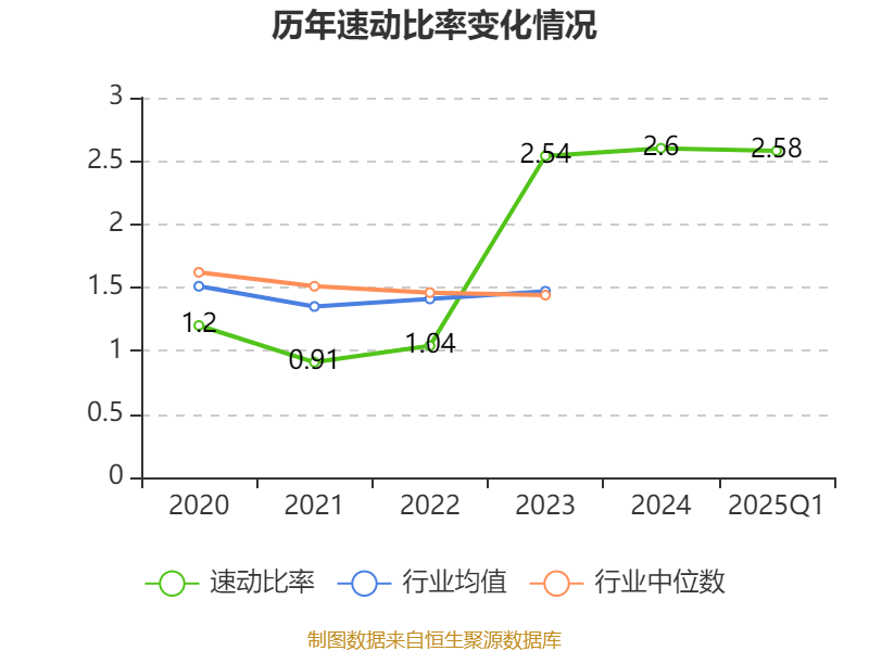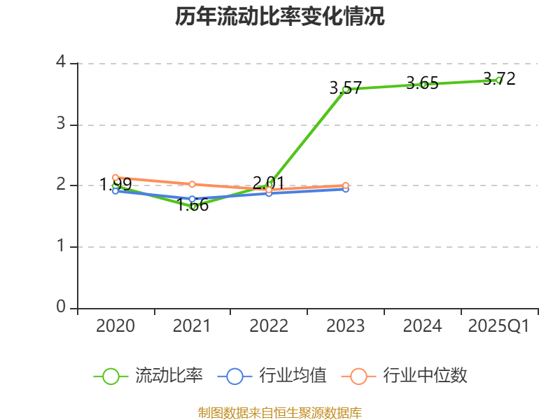 2025年第一季度,公司流动比率为3.72,速动比率为2.58。