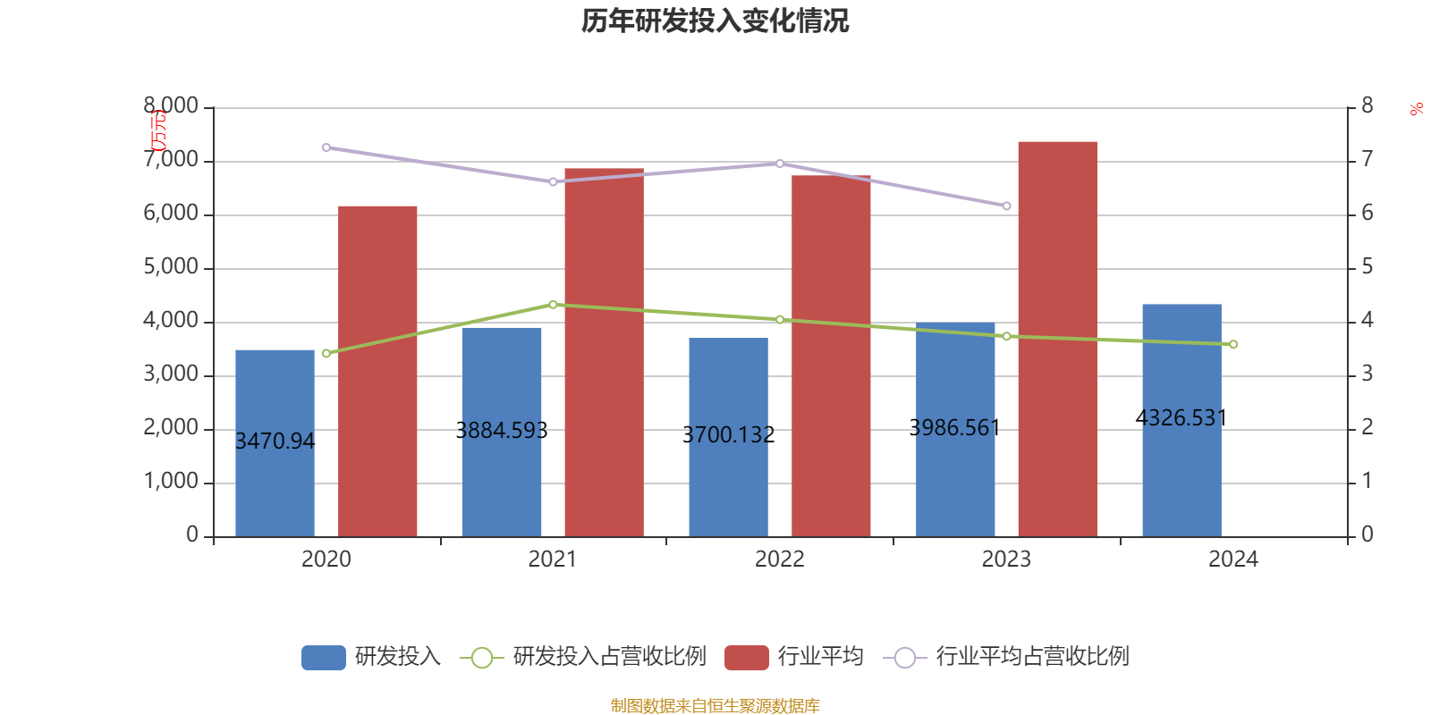 2024年全年,公司研发投入金额为4326.53万元,同比增长8.53%;研发投入占营业收入比例为3.58%,相比上年同期下降0.15个百分点。此外,公司全年研发投入资本化率为10.58%。
