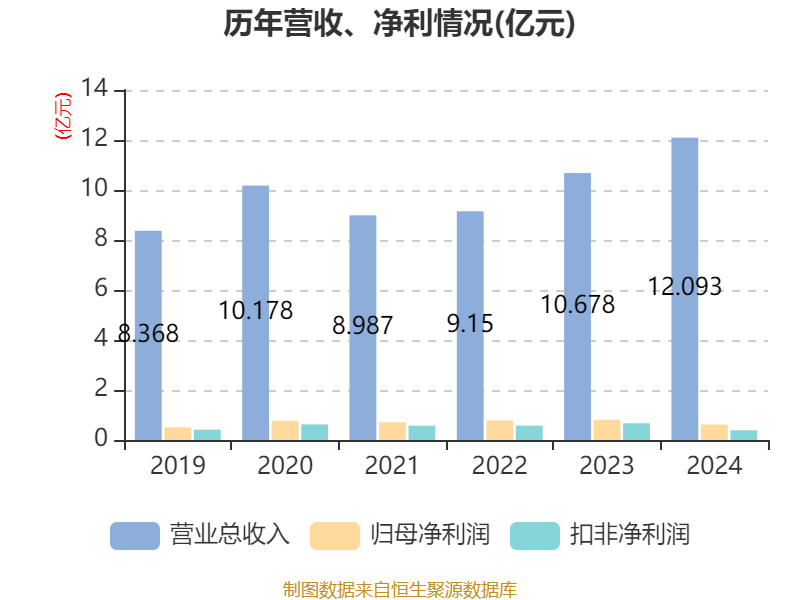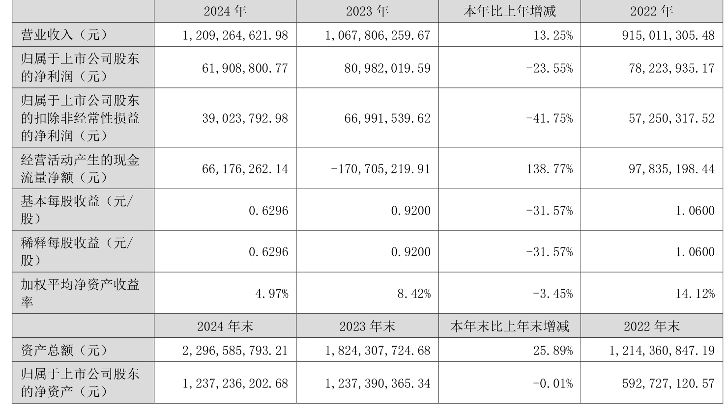 中证智能财讯世纪恒通(301428)4月26日披露2024年年度报告。2024年,公司实现营业总收入12.09亿元,同比增长13.25%;归母净利润6190.88万元,同比下降23.55%;扣非净利润3902.38万元,同比下降41.75%;经营活动产生的现金流量净额为6617.63万元,上年同期为-1.71亿元;报告期内,世纪恒通基本每股收益为0.6296元,加权平均净资产收益率为4.97%。公司2024年度分配预案为:拟向全体股东每10股派现1元(含税)。