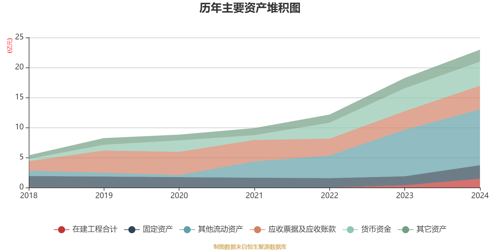 资产重大变化方面,截至2024年末,公司在建工程合计较上年末增加303.14%,占公司总资产比重上升4.36个百分点;货币资金较上年末增加5.46%,占公司总资产比重下降3.39个百分点;其他流动资产较上年末增加19.88%,占公司总资产比重下降2.03个百分点;固定资产较上年末增加50.59%,占公司总资产比重上升1.61个百分点。