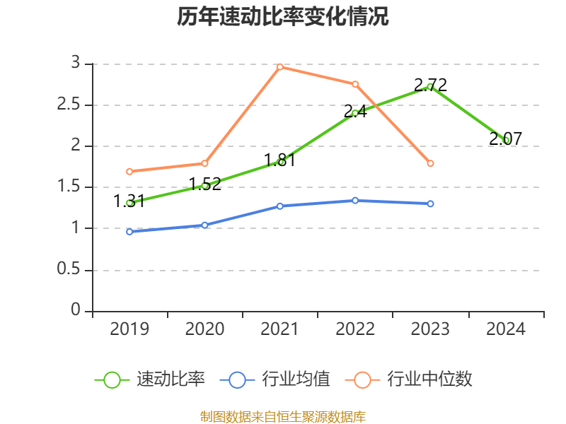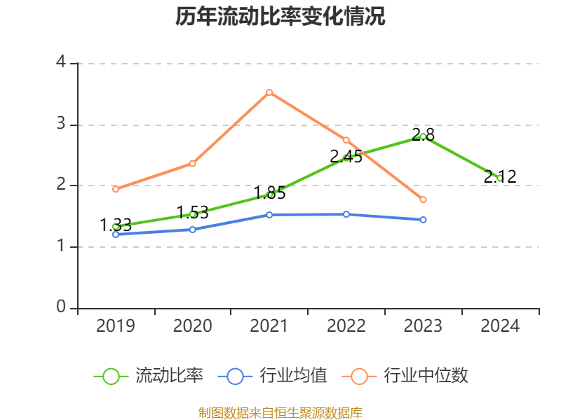 2024年,公司流动比率为2.12,速动比率为2.07。