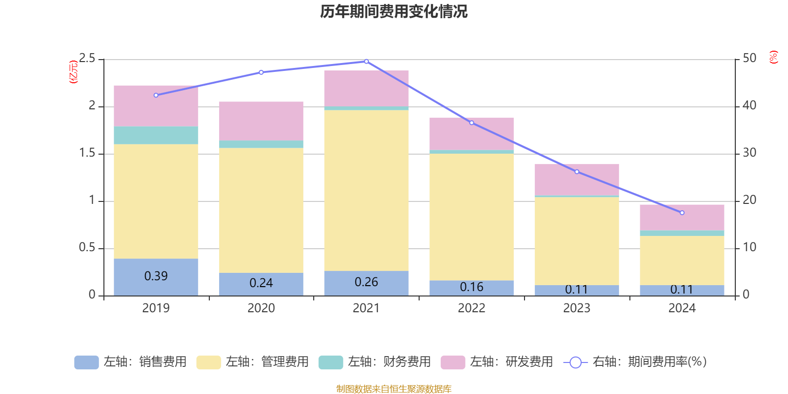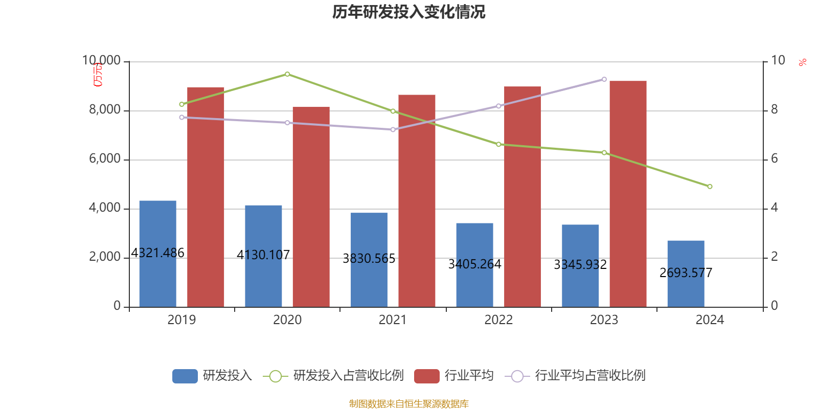 2024年全年,公司研发投入金额为2693.58万元,同比下降19.5%;研发投入占营业收入比例为4.9%,相比上年同期下降1.38个百分点。此外,公司全年研发投入资本化率为0%。