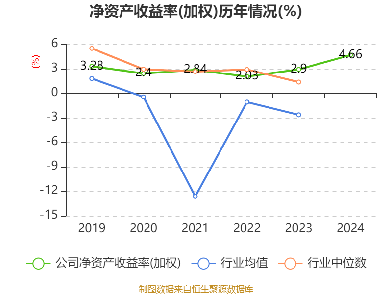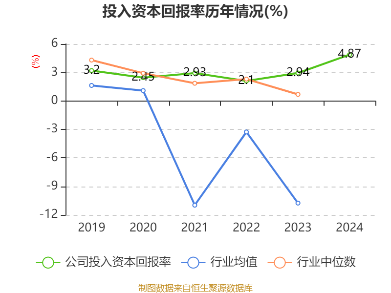 数据显示,2024年公司加权平均净资产收益率为4.66%,较上年同期上升1.76个百分点。公司2024年投入资本回报率为4.87%,较上年同期上升1.93个百分点。
