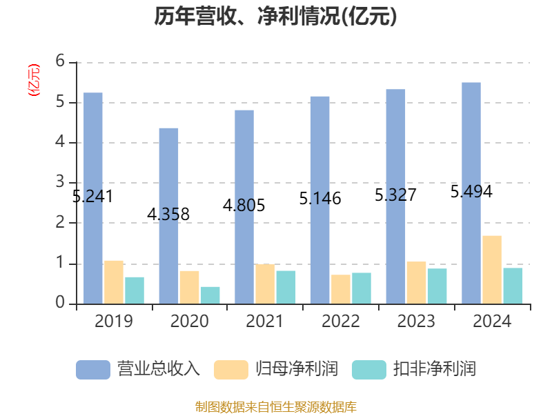 中证智能财讯国脉科技(002093)4月26日披露2024年年度报告。2024年,公司实现营业总收入5.49亿元,同比增长3.15%;归母净利润1.69亿元,同比增长61.41%;扣非净利润8847.89万元,同比增长1.55%;经营活动产生的现金流量净额为2.12亿元,同比增长153.94%;报告期内,国脉科技基本每股收益为0.1695元,加权平均净资产收益率为4.66%。公司2024年度分配预案为:拟向全体股东每10股派现0.8元(含税)。