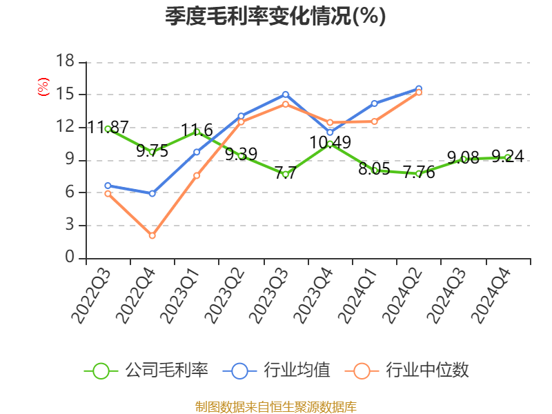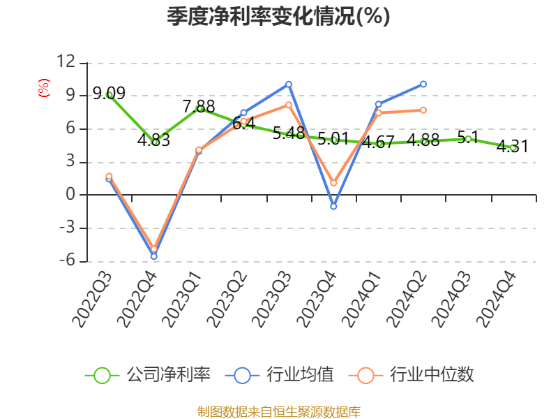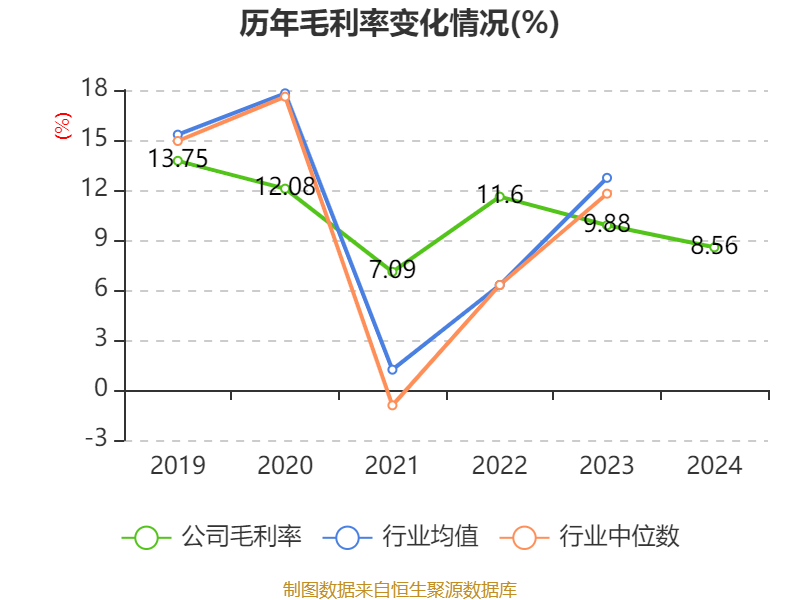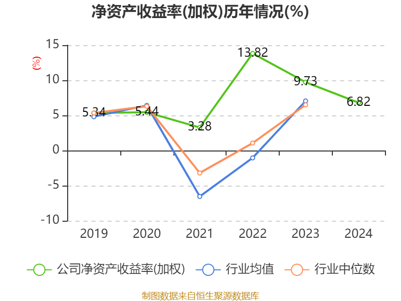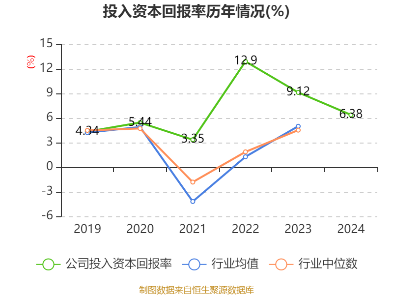 数据显示,2024年公司加权平均净资产收益率为6.82%,较上年同期下降2.91个百分点。公司2024年投入资本回报率为6.38%,较上年同期下降2.74个百分点。
